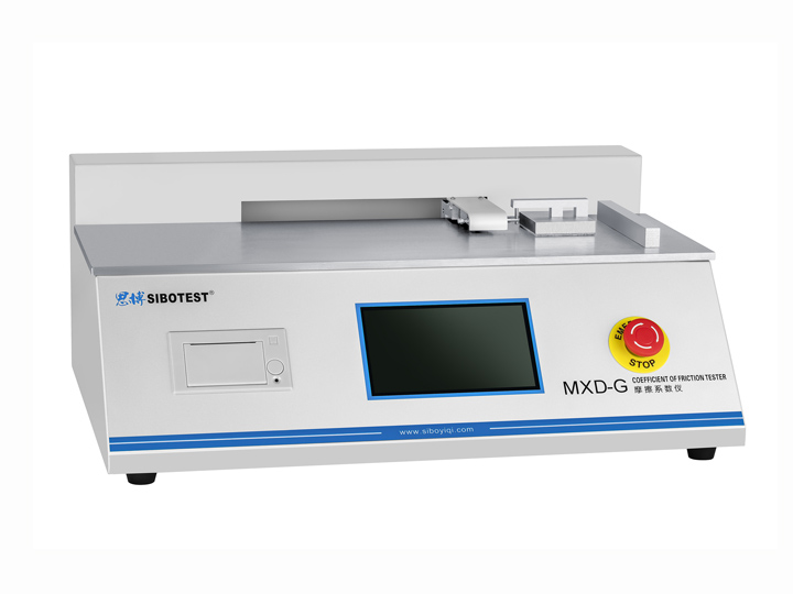 MXD-G摩擦系数仪适用于测量塑料薄膜和薄片、橡胶、纸张、纸板、编织袋、织物风格、通信电缆光缆用金属材料复合带、输送带、木材、涂层、刹车片、雨刷、鞋材、轮胎等材料滑动时的静摩擦系数和动摩擦系数。